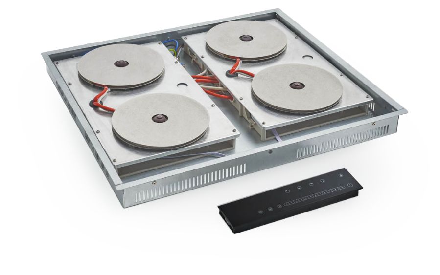 Invisacook es una placa de induccion que se coloca por debajo de la encimera de la cocina y calienta las sartenes a traves de la superficie.